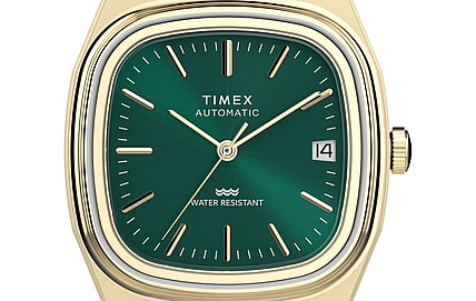An old-school dress watch originally launched in 1983 gets upgraded with a gold-tone case and green dial.