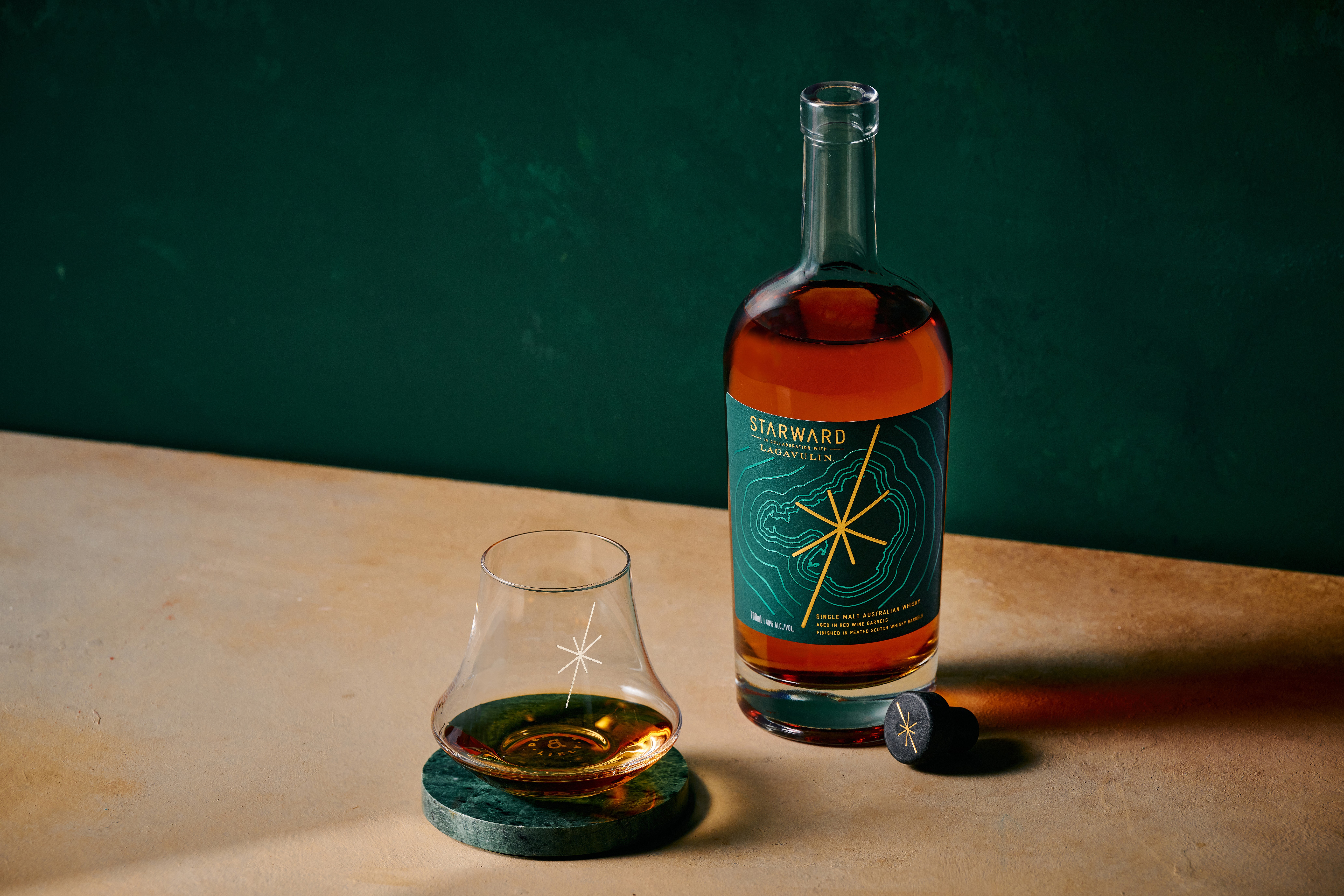 The limited edition Starward Single Malt Australian Whisky Finished in ex-Lagavulin Barrels comes bottled at 48% ABV, packaged in a sturdy emerald green and gold embossed box for $130.