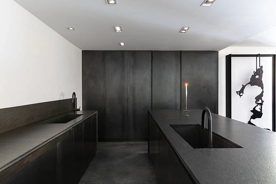Custom steel cabinetry and door frames are complemented in elegant, minimal-yet-luxurious fashion by Venetian plastered walls and gallery lighting, giving the listing a modern, handsome flair. Its own privacy hedge and door system adds a sense of mystery to the $2.5 million listing, in addition to direct garage access. The garage access itself might prove more than suitable for a supercar in the style of Bruce Wayne, as luck would have it.