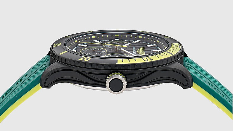 Produced by Timex for the Aston Martin Aramco Formula 1 Team and featuring the racing team’s livery colors throughout.
