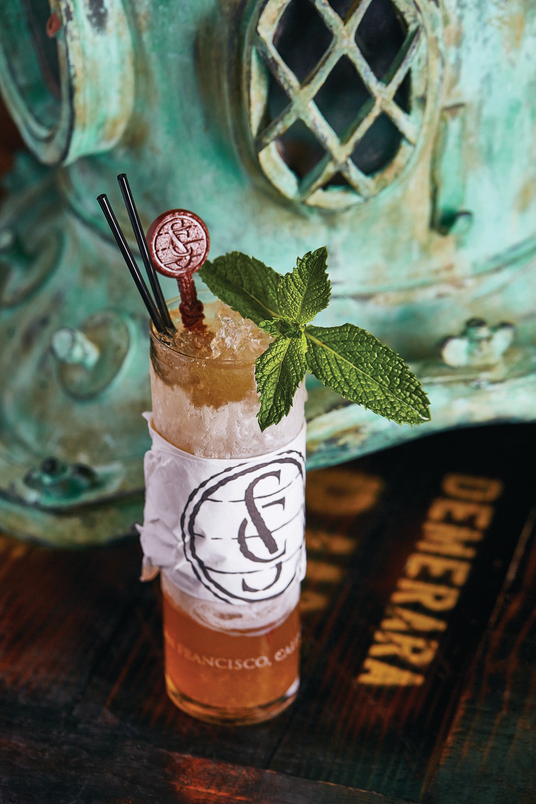 Method: Add all the ingredients to a Collins or highball glass, then add crushed iced until the glass is three-quarters full. Use a bar spoon or lélé to swizzle. Top up with additional crushed ice as needed to fill the glass and garnish.