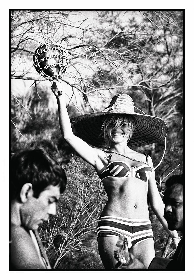 Bardot’s killer looks and knockout style have been emulated by the likes of Claudia Schiffer, Kate Moss, Lara Stone, Amy Winehouse, Georgia May Jagger, Scarlett Johansson, and Paris Hilton. Asked about her many imitators, Bardot simply sniffed, ”None have my personality.” She put Saint-Tropez on the map after filming And God Created Woman there in 1953, directed by her husband Roger Vadim, establishing such a strong connection with the Mediterranean paradise that she lives there to this day, having made it her permanent home; many of Dussart’s photographs were taken there.