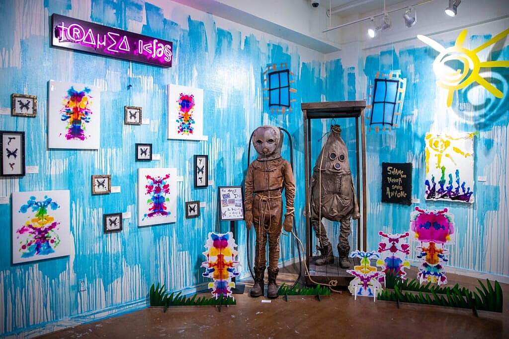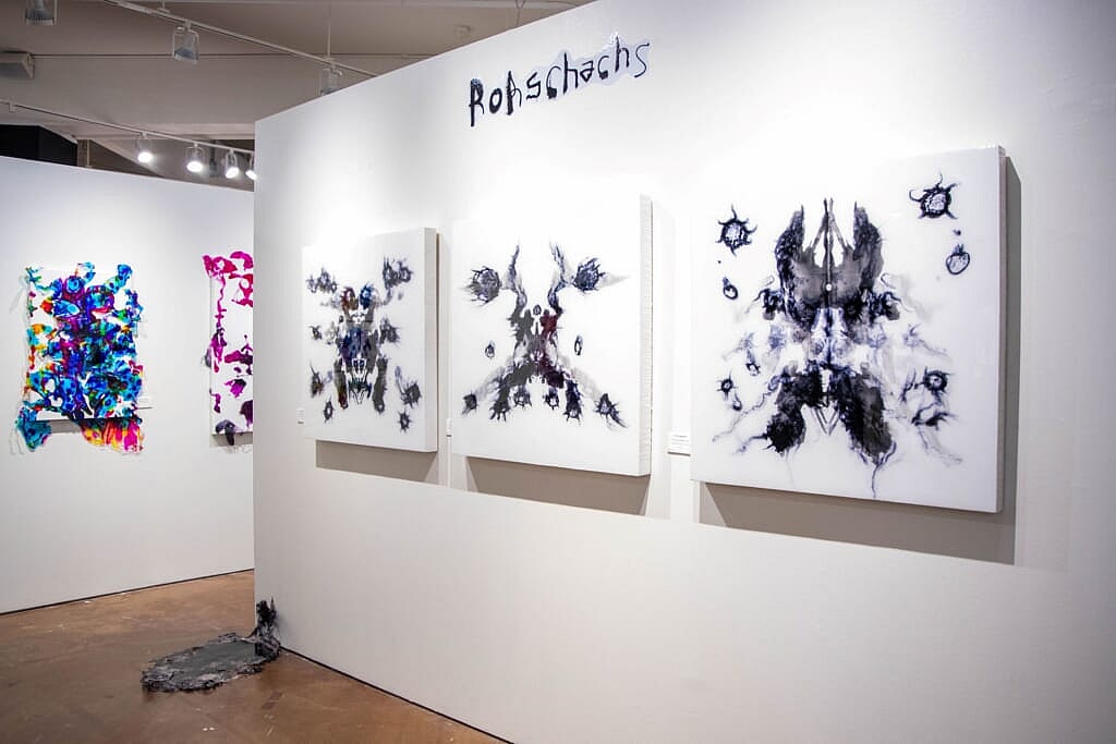 On view through April 17th, their latest show whisks viewers into Duel Diagnosis with winding walls of neon lights and colorful Rorschachs.