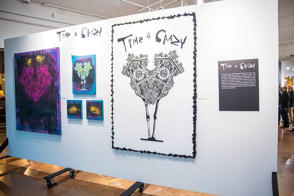 “Duel Diagnosis” is Navarro’s new project with LA-based artist PADHiA, of “Unfuk Yourself” fame. The mental health-focused duo recently opened an expansive exhibition at West Chelsea Contemporary’s 7,800-square foot gallery in Austin, Texas.