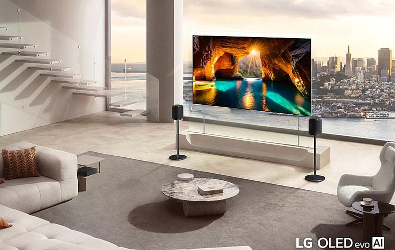 While the device prioritizes its role as a design element, it remains a pointedly high-performance TV. Under the hood, it utilizes LG’s MiniLED technology and the Alpha 7 AI Processor to deliver 4K visuals. Audio is supported by AI Sound Pro, which creates a virtual 9.1.2 channel immersive experience.
