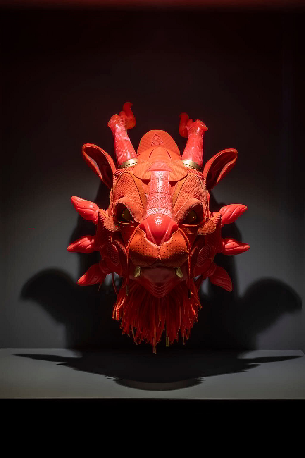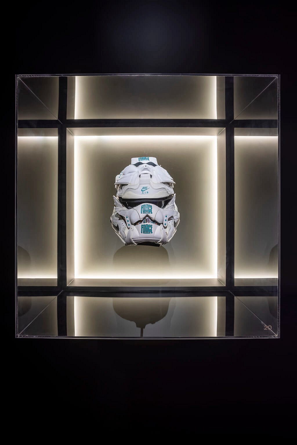 “Things were a bit more abstract compared to newer work that’s more subjective, more literal like the German Shepherd mask I made from Yeezy 700s.” While he’s open to incorporating more than one style in future artworks, the artist sees bigger shifts coming from his new skills in 3D modeling and printing, fabricating custom forms like armatures.