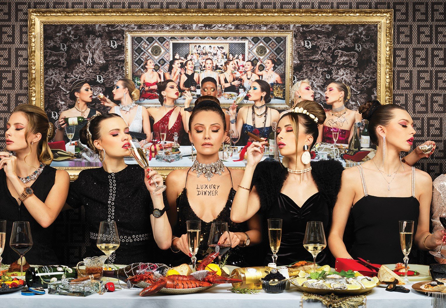 The “Luxury Dinners” and “Seven Sins” series explore the excesses of modern society, unrestrained consumption and the loss of moral values. Locations are chosen for their symbolism or contrast with the theme to amplify the message conveyed by each photograph.