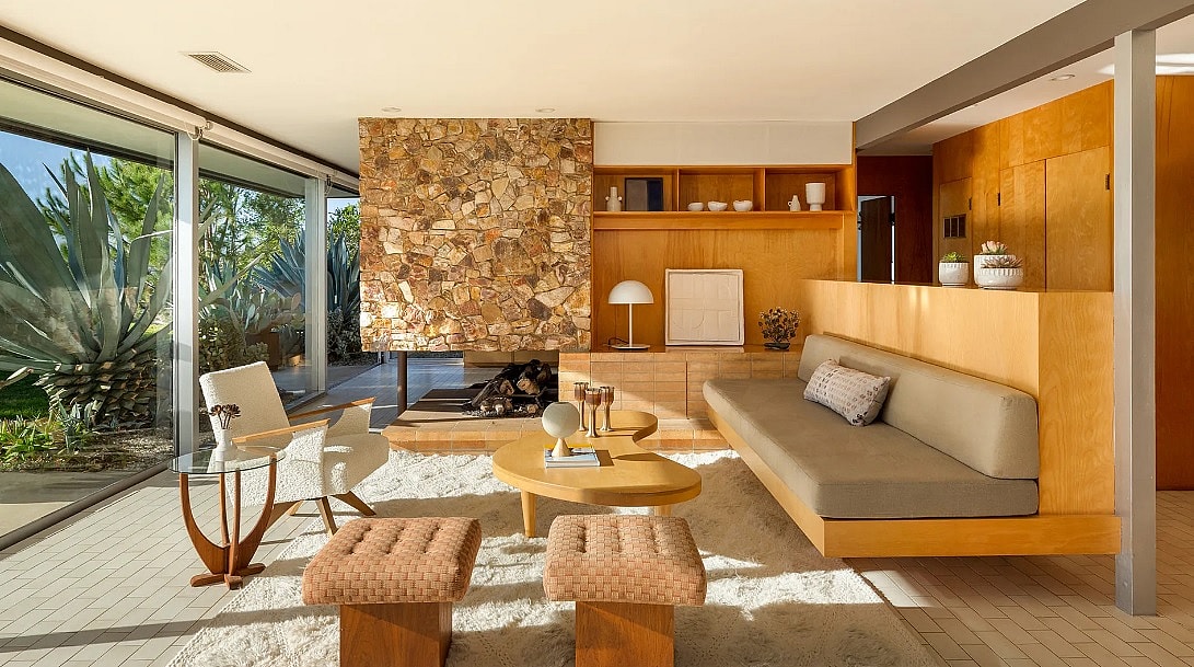 The property itself is packed with stylish sundries of the rock n’roll lifestyle, like a Neutra-designed sofa system featuring a built-in record player and concealed speakers (part of the original property).