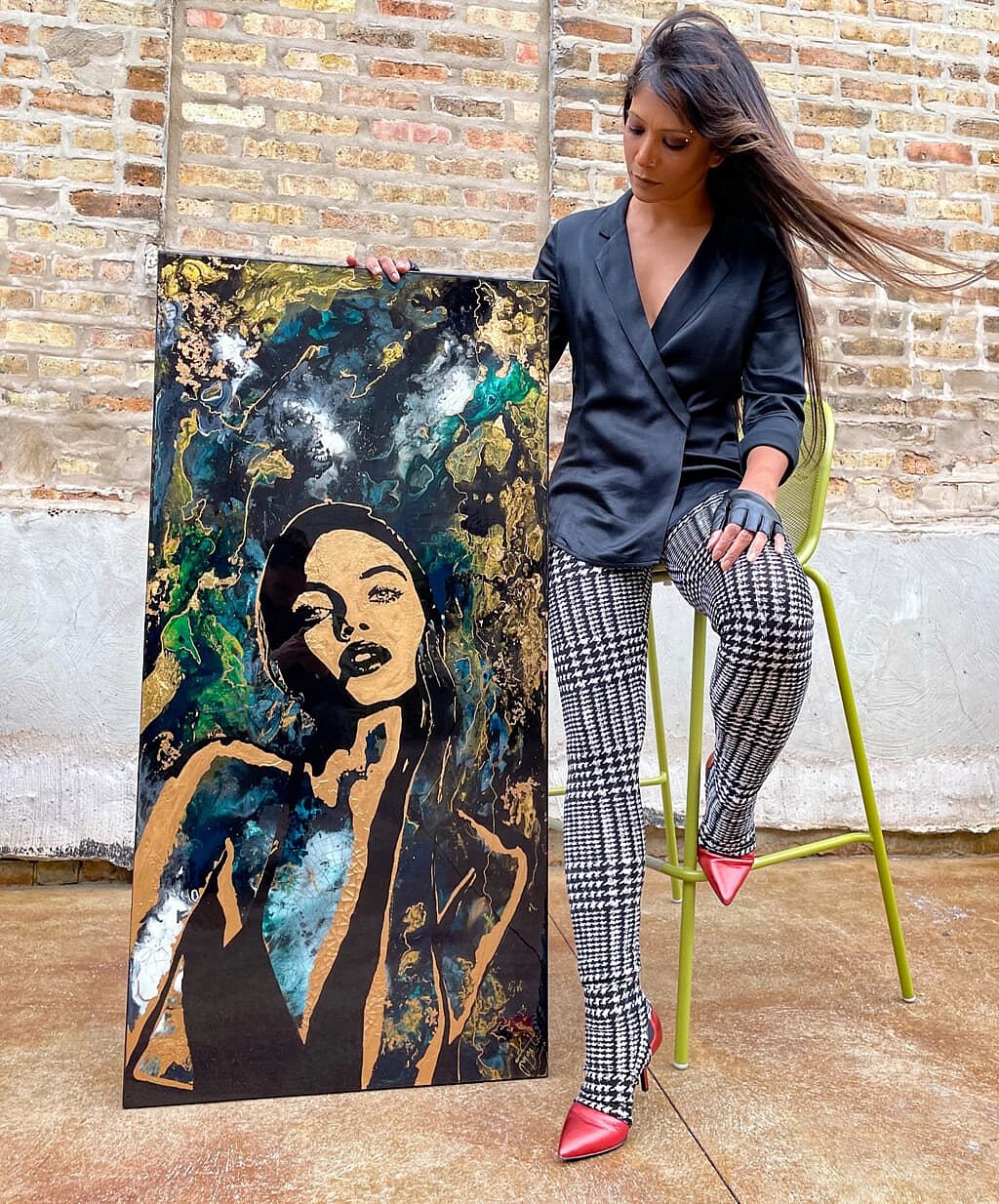 The self-taught South Asian talent has been shaking up the Chicago art scene since 2013, when she left her 15+ year career working in eCommerce with the likes of Harpo Studios on the heels of heartbreak. The sage emotional warriorship that drives Vyas’s work often captures viewers with its powerful sensuality, but keeps them through its explosive use of color and gaze, sensitivity writhing through sheer body language.