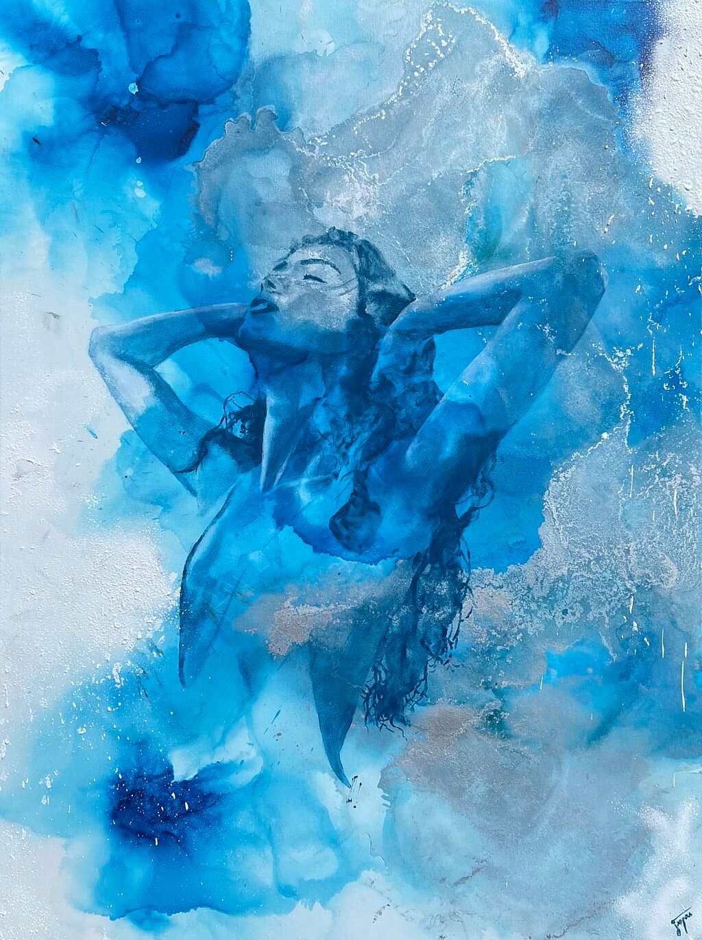 She compares this technique to her own inner-development, a balance between control and surrender. Figuration requires discipline, but abstraction proves more intuitive—actively experimenting while heeding the paint’s independent will at the same time.