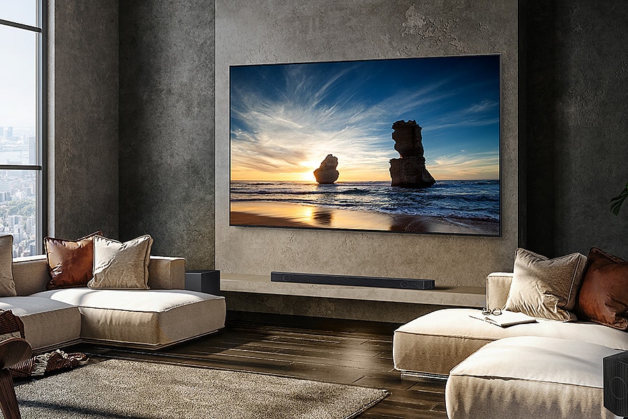 Other noteworthy tech features on the jumbo-sized set include Quantum Matrix with Mini LEDs designed to catch every detail in dark to bright scenes; Neo Quantum HDR+ to view content with optimal picture quality; and Dolby Atmos and Object Tracking Sound+ to fully immerse yourself in the audio action.