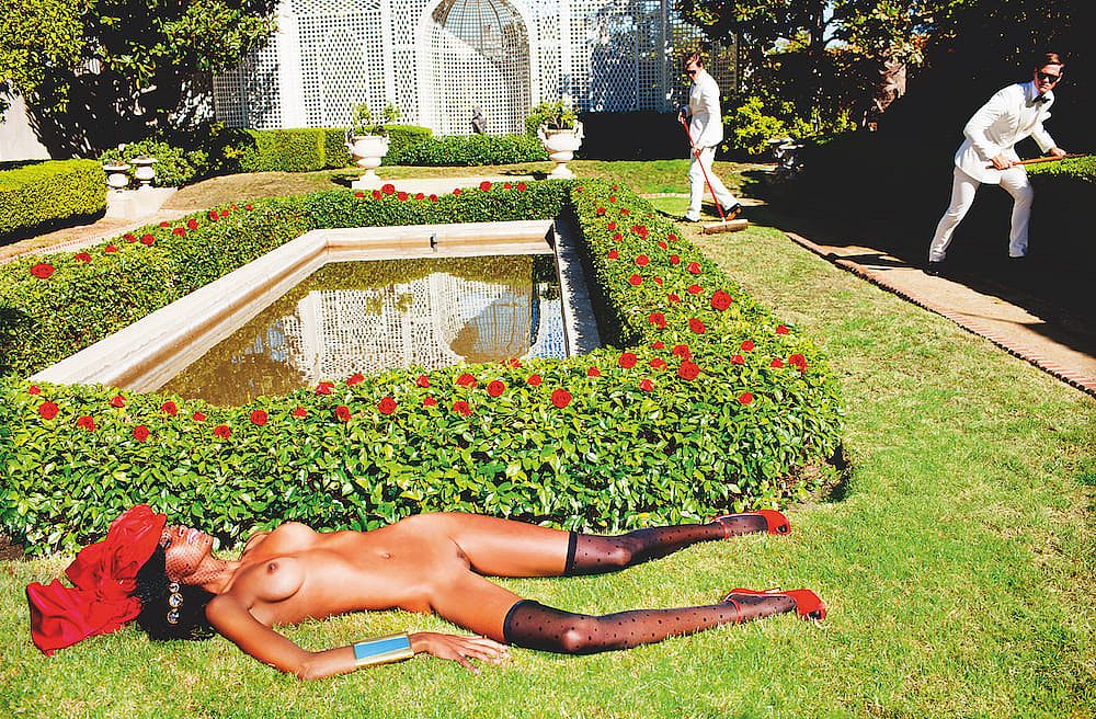 In one shot, a naked model hungers for fame, devouring the letters of the Hollywood sign. Another goes bottoms up on the red carpet, while yet another glossy stunner undergoes a cheeky injection, all for that perfect backside shot.