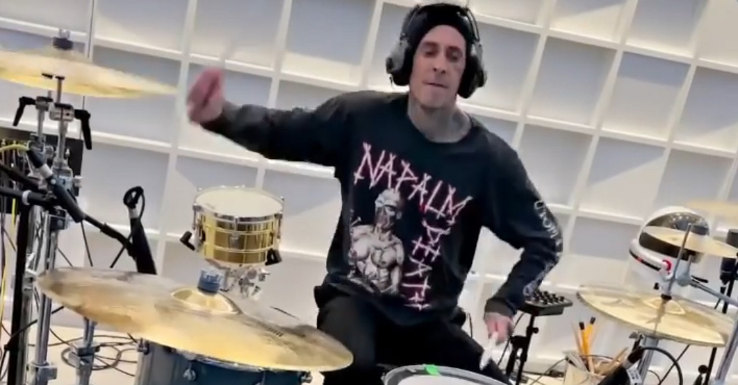 Travis Barker turned his drumsticks on Adele’s “Easy on Me” to turn the emotional ballad into a thunderous pop-punk anthem in his first Instagram post of 2022.