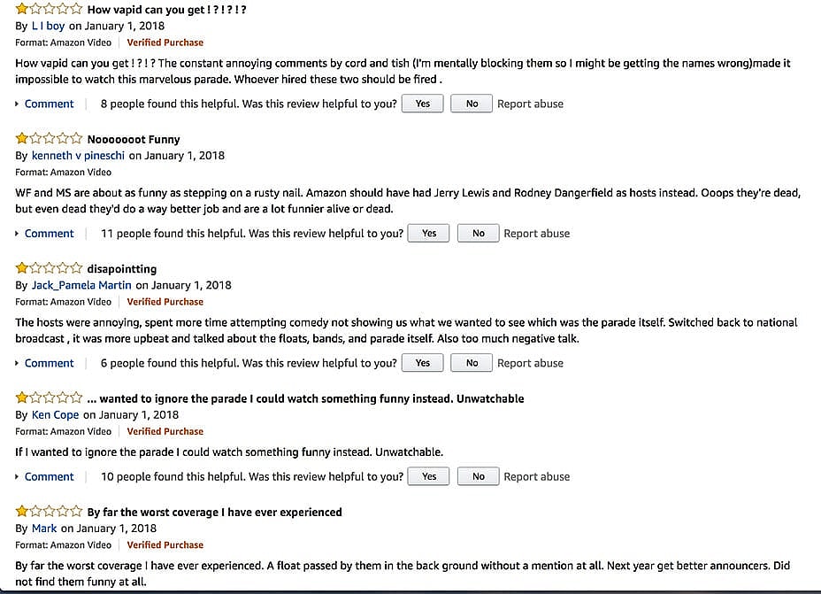 Take these reviews as encouragement of satire well done. @AmazonStudios @amazon Best Rose Parade ever! pic.twitter.com/CANv77qDzq