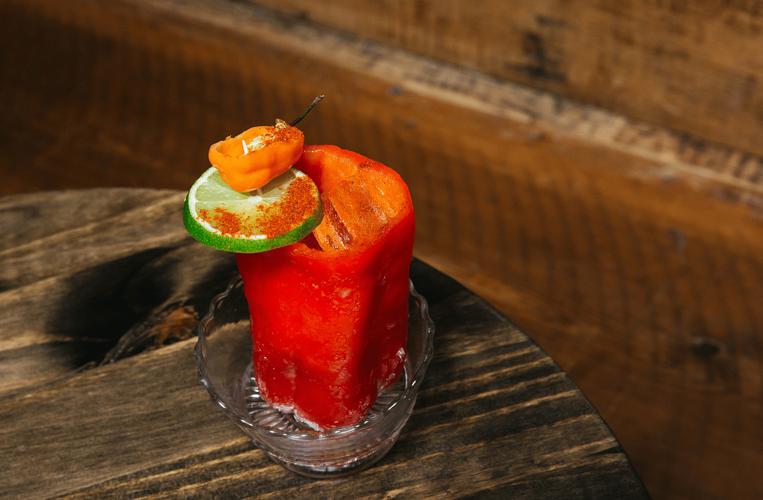 Place all the ingredients into a shaker, add ice and shake well. Strain into a rocks glass and garnish with a habanero pepper.