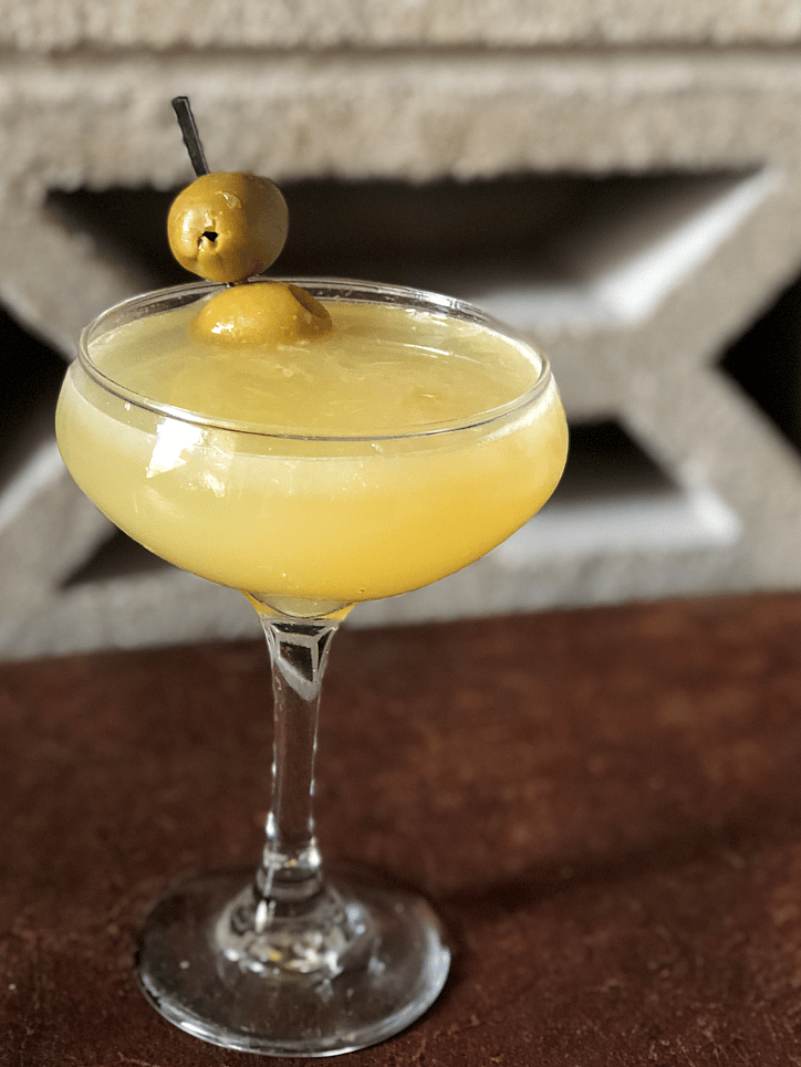 Combine ingredients in a mixing glass. Shake well with ice. Strain into a chilled coupe. Garnish with citrus-marinated olive.