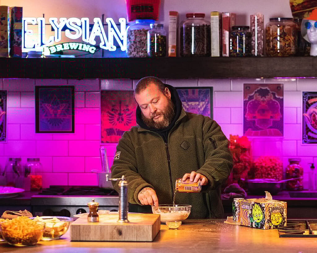 He steps up to the plate, and into the kitchen, in time for the launch of Elysian Brewing’s hopped up Dank Dust IPA, which packs a wallop at 8.2 percent ABV and plenty of those dank tones in aroma and flavor.