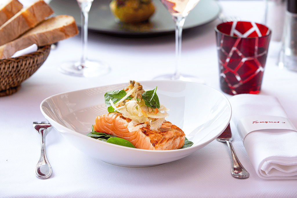 And then there’s Fouquet’s Cannes, outpost of Fouquet’s in Paris, one of the world’s most famous restaurants, located in Le Majestic owner Groupe Barrière’s Hotel Barrière Le Foquet located just off the Champs-Elysées. Both locations of the 120-year-old brasserie, famous for its celebrity clientele, are helmed by 3-Michelin-star Chef Pierre Gagnaire.