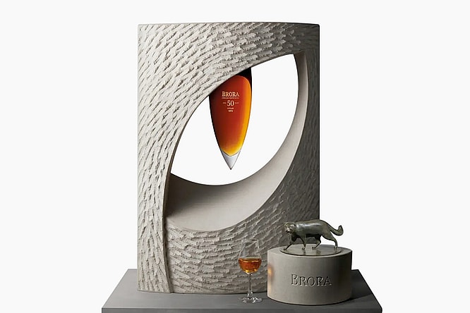 The bottle is also presented in exceedingly rare fashion: The elegant decanter is housed in a sand limestone sculpture made from the same stone as the revamped distillery.