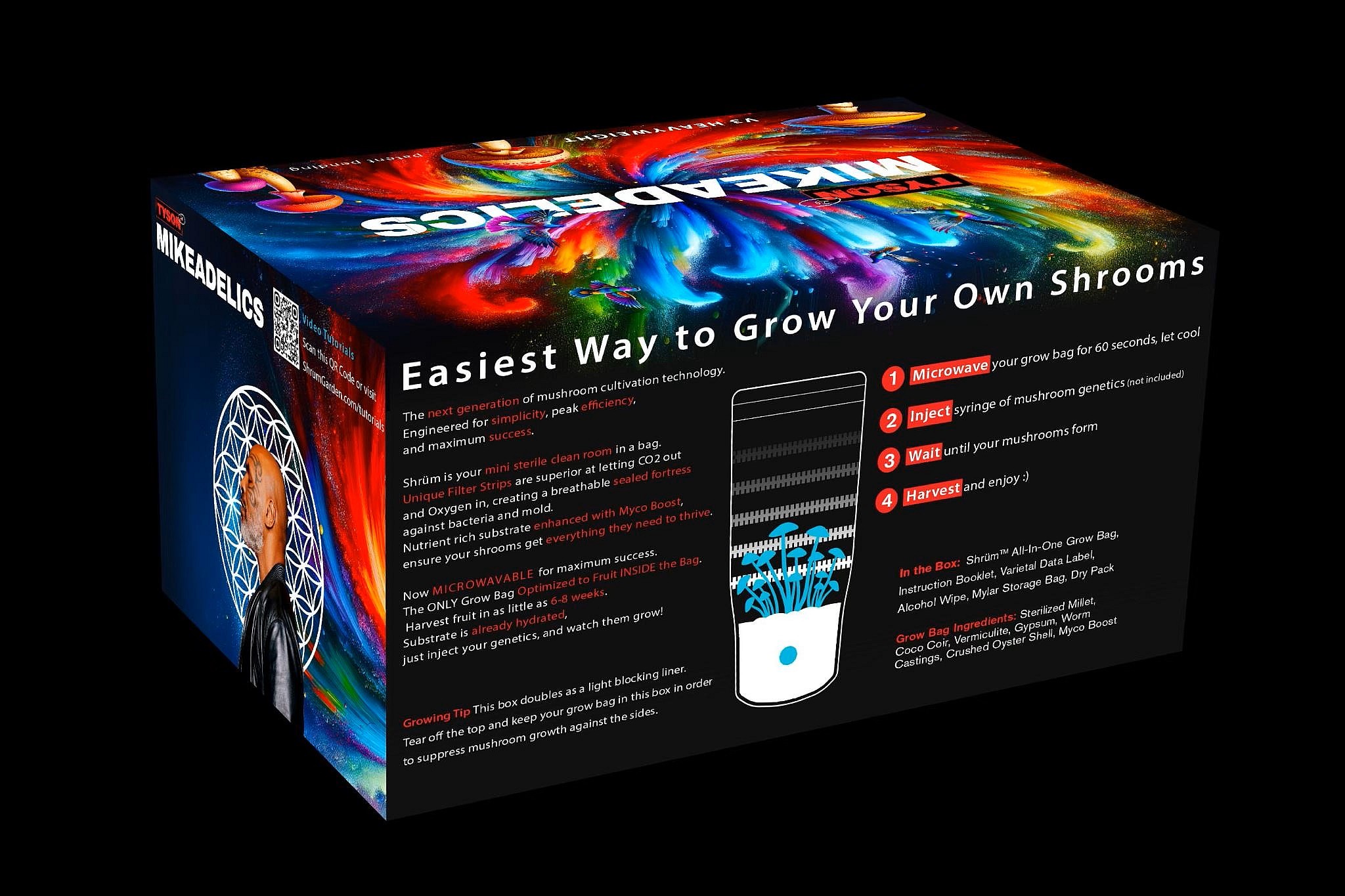 Each Tyson 2.0 Mikeadelics box includes a grow bag, instruction booklet, inoculation data label, alcohol wipe and Mylar storage bag with a dry pack to store dried mushrooms. Every kit yields roughly 1/2 ounce of mushrooms, with the potential for up to three harvests per bag. It takes six to eight weeks to grow and the box retails for $50, not including the injectable mushroom culture.