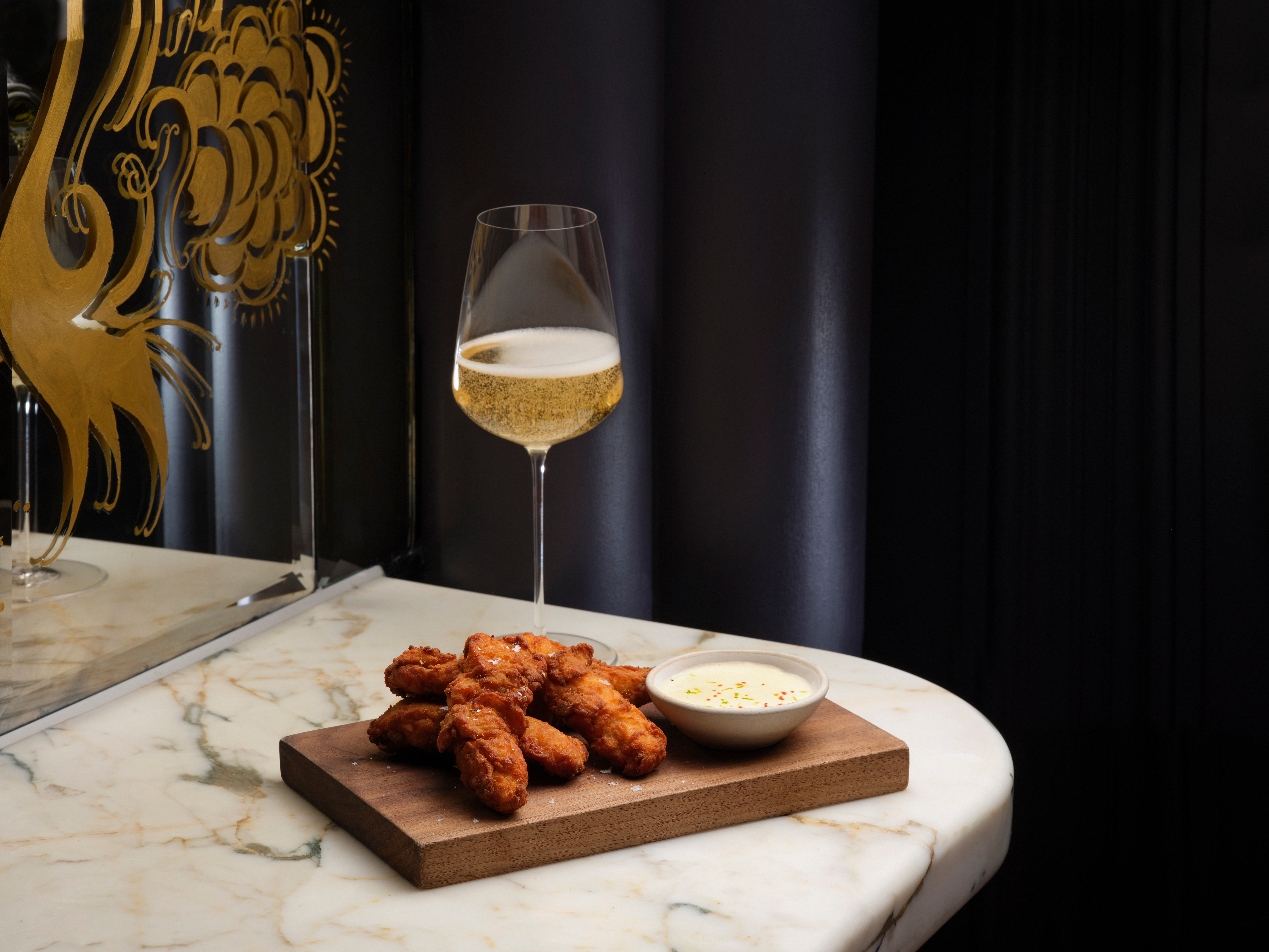 New York’s Sip and Guzzle—a recent off-shoot of famed Tokyo cocktail den The SG Club—dishes out Tea-Smoked Golden Osetra caviar with Puffed Chicken Skin and Koji Butter for $165. Bunny’s Buckets & Bubbles, a diner-style spot in Baltimore, serves its fried chicken buckets with glasses of Champagne, Cava, Prosecco and other approachable bubblies.