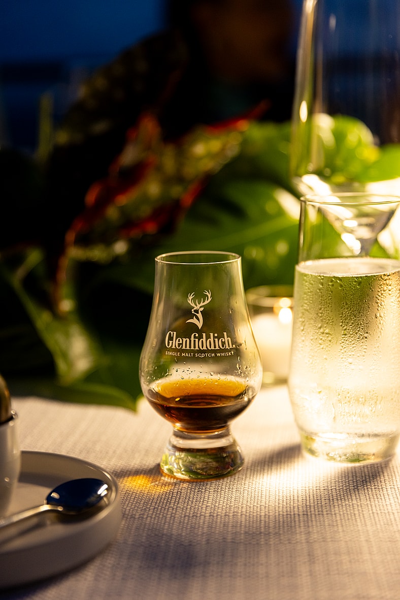 The highlight of the evening was the unveiling of a never-before-released Glenfiddich 23 Year Old, a single cask whisky distilled in 2001 that isn’t available for public purchase. A mere 100 bottles of the limited-edition spirit, which was aged in an Oloroso sherry cask, were produced. The nose is rife with aromas of toffee, creamy sweetness, and sherry, with hints of spicy oak, toasted almonds, and sun-dried raisins, while the palate features sherbet spice, cinnamon, and nutmeg that give way to a lingering, spicy finish.