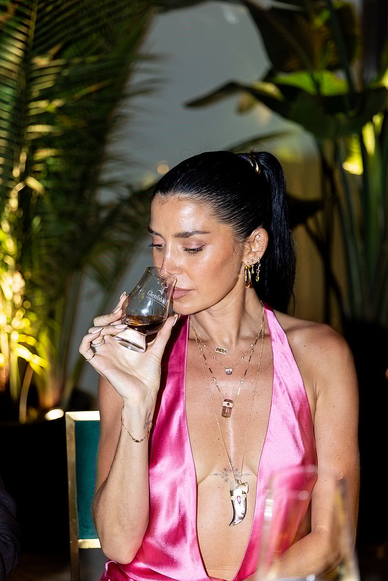 Attendees including actors Ian Bohen (Yellowstone) and Tyler Hoechlin (Superman & Lois), Sports Illustrated Swimsuit Edition model Nicole Williams English, Aston Martin F1 driver ambassador Jessica Hawkins, and influencer and investor Hannah Bronfman also got the chance to try a dram of Glenfiddich 50 Year Old. This also exceedingly rare (but technically available) whisky is characterized by notes of Madeira cake, muscovado sugar, and petrichor, followed by a smooth oak and vanilla finish. A member of Glenfiddich’s Time:Reimagined Series, this expression embodies what the brand refers to as “Simultaneous Time,” exploring the parallel and complex conditions that have influenced the liquid.