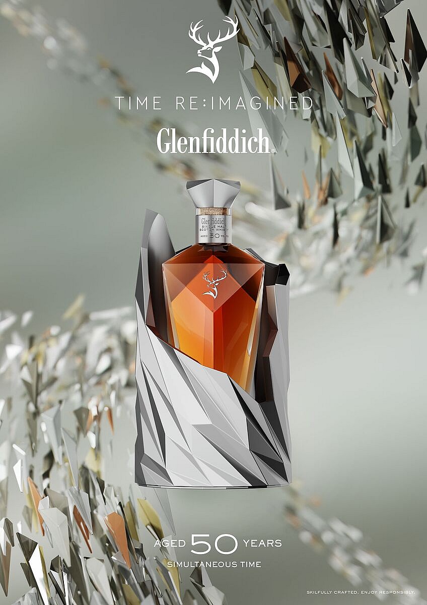 The Glenfiddich 50-Year, with an eye-catching $50,000 price tag to match, goes by Simultaneous Time, in a nod to “the parallel and complex conditions that have influenced the liquid.”