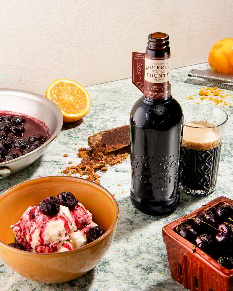 It was far from the only distinct barrel aging choice used by Goose Island: Parker’s Heritage 10-year 17th edition rye whiskey barrels were used to age the 2025 Bourbon County Brand Reserve Stout, delivering rye spice, plus flavors including marzipan and dried fruits. Just as engaging and sumptuous is Bourbon County Brand Cherries Jubilee within the 2025 lineup, delivering subtle baking spice and “the essence of cognac-soaked cherries” after time spent in freshly dumped bourbon barrels, Goose Island notes.