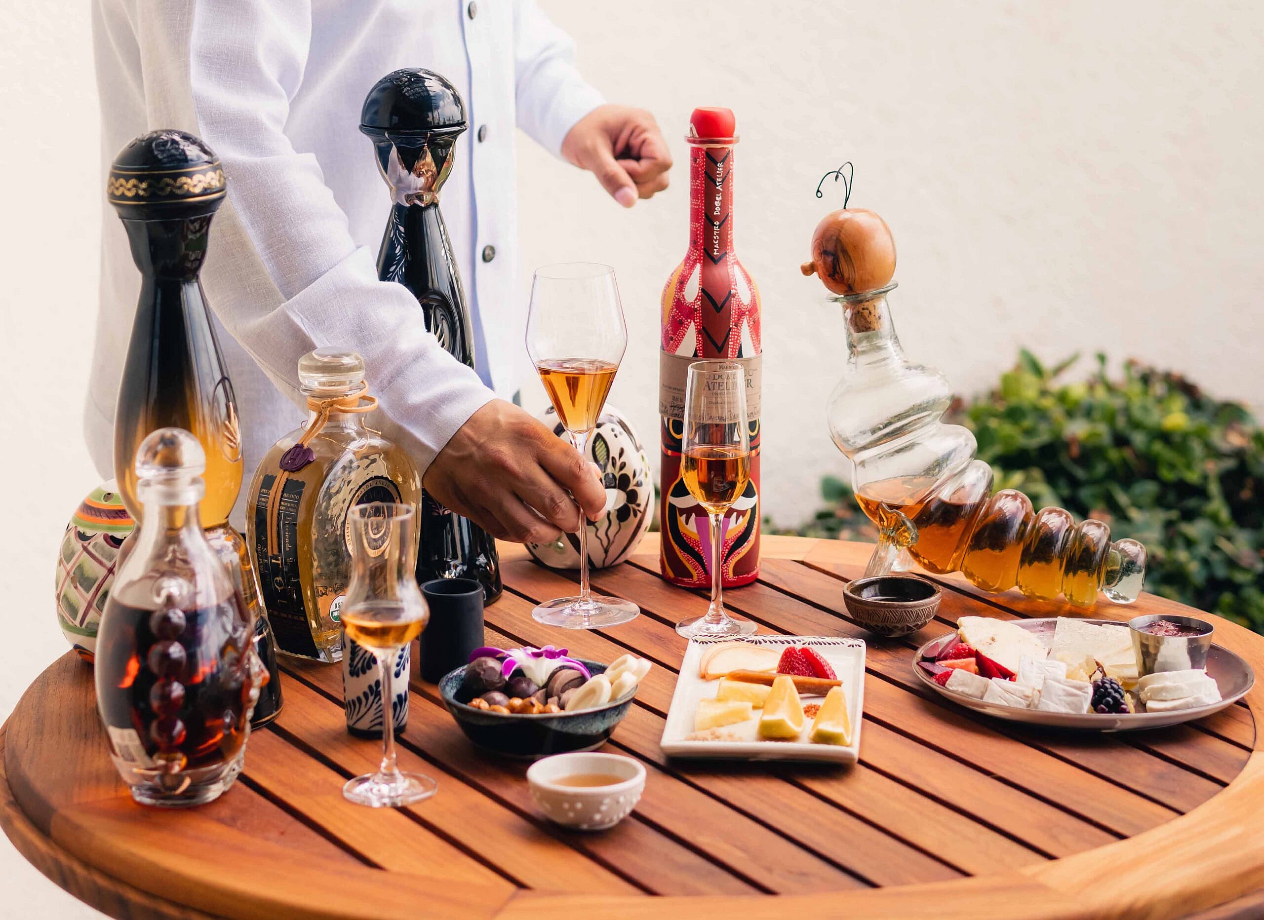 Ana creates a complete sensory experience made up of three elements: flavors, textures, and aromas. “I select the distillates according to the client’s taste. I ask what they usually drink and what they like, and then provide them with unique distillates. I always choose a sotol, a raicilla, a mezcal and a tequila. The purpose of this is to allow them to learn about various varieties of agave plants and to see the small batches that tell a story of the traditional Mexican distillates produced from agave plants.”