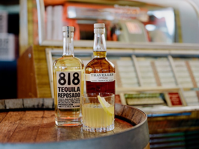 The boozy summer sipper uses both Jenner’s 818 Tequila and Stapleton’s Traveller Whiskey.
