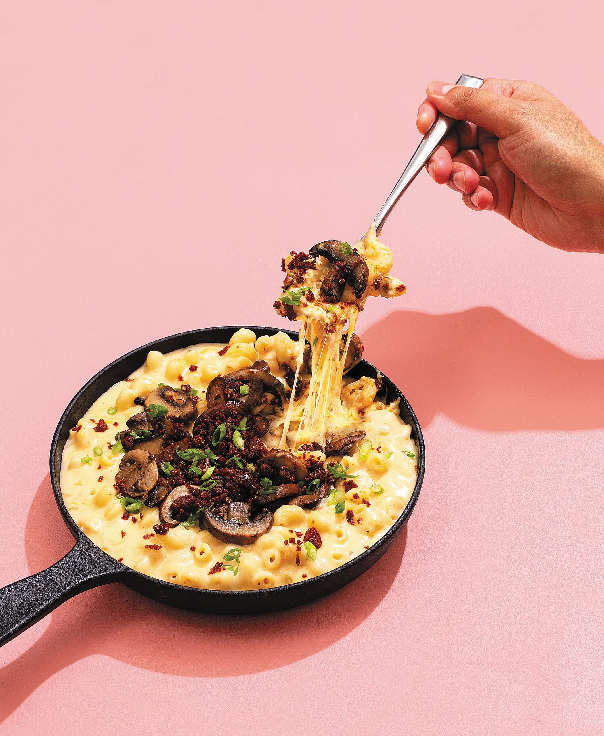 This recipe combines two of my favorite comfort foods—mac and cheese and queso fundido—to make a dish with so many layers of flavor: The creamy cheese sauce is infused with garlic, onion, and paprika, then layered with spicy chorizo and savory mushrooms.