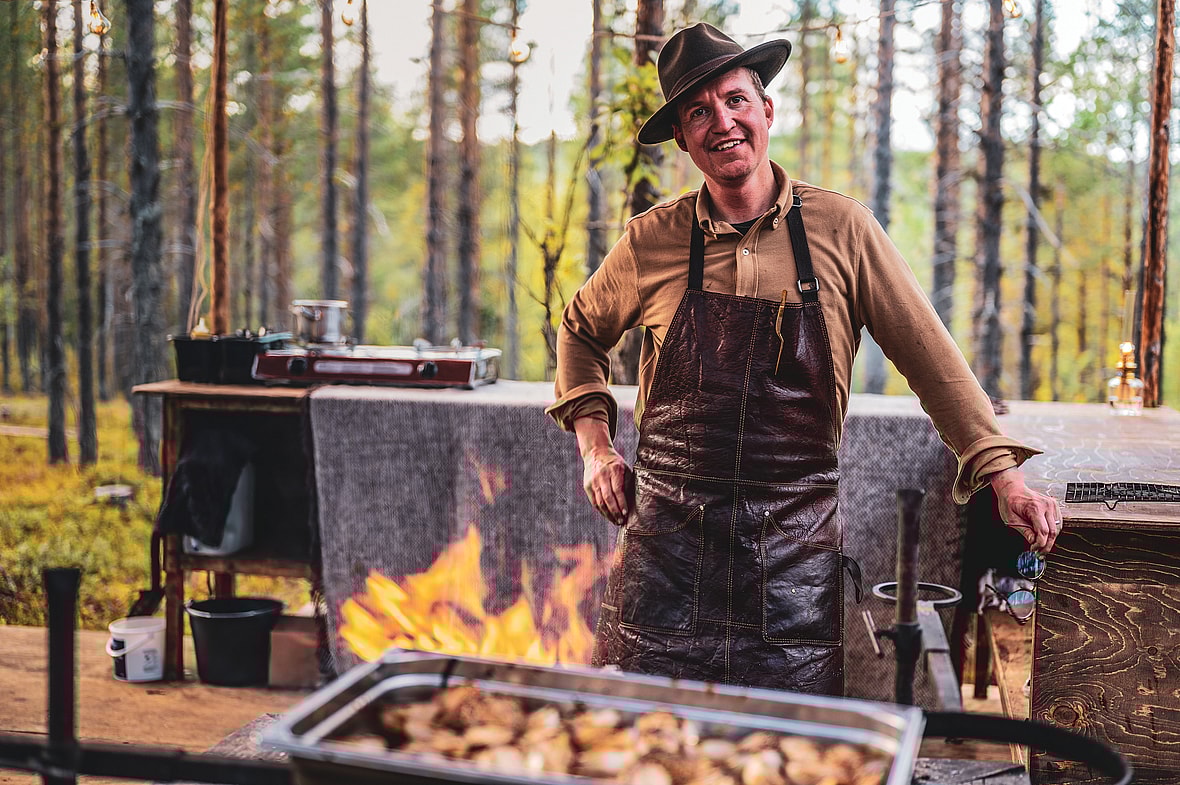 In a remote clearing in Swedish Lapland near the Arctic Circle, nine Michelin-starred chefs are racing around to various fire pits and makeshift prep stations, plating rustic-looking delicacies for diners perched on stools carved from tree trunks.
