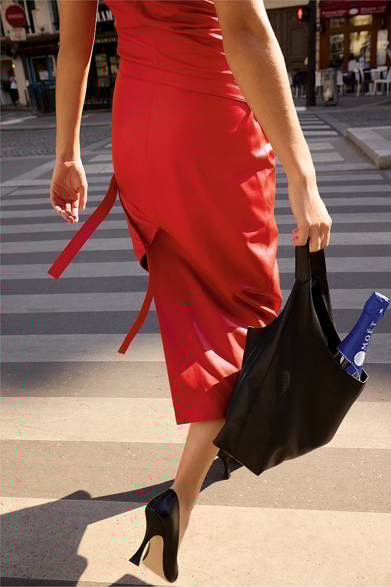 The “Bow Creation,” which references the historic bows that were tied around bottles of Moët as early as 1892, sizes up the bottle up to a 1.5-liter magnum for a proper party and fills it with either Grand Vintage Collection 2003 (Black), Brut Impérial (Midnight Blue) or Nectar Impérial Rosé (White) champagne. An oversized fabric bow adorned with pearled beads, crafted by Parisian embroiderers Atelier Baqué Molinié. can be detached and worn as a brooch. The Grand Vintage Collection 2003 magnum, styled in black, was selected by Cellar Master Benoît Gouez as an homage to the memories of Pharrell’s 30th birthday celebration.