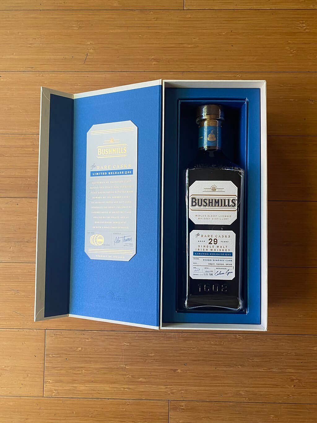 And now 17 years after that this liquid gold has been bottled to be shared and experienced by whiskey enthusiasts across the planet—although only 500 bottles of Bushmills Rare Casks 29-Year-Old Single Malt Finished in Pedro Ximenez Sherry casks will make it into their hands.