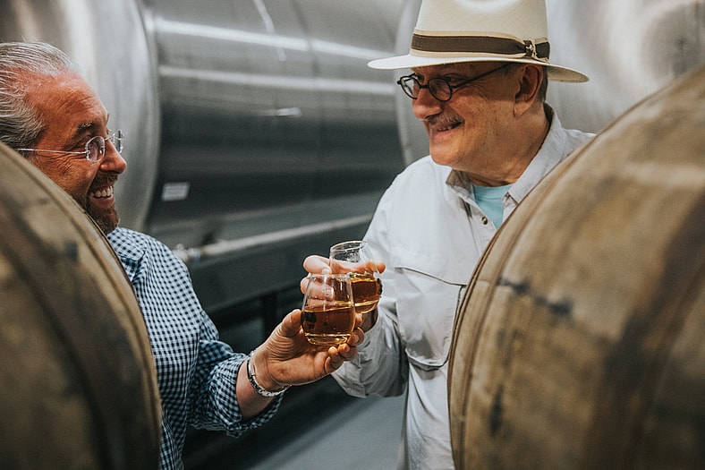 As Master Blender for Jacob’s Pardon, his most recent project is the latest from their “Cask Collective’” series—a light whiskey aged 16 years, and then finished in historic Oloroso casks sourced from sherry makers Williams & Humbert. Founded in 1877 by brothers-in-law Sir Andrew Williams and Arthur Humbert, the ancient winemakers from Jerez de la Frontera, Spain, are among the most prestigious sherries in the world. Pacult explains how his partners at Jacob’s Pardon Marc and Jake Taub collected roughly 2,500 various barrels of American whiskey, including bourbon, Light Whiskey, and Tennessee whiskey warehoused in late 2018. “Suffice it to say, I had a treasure trove of aged whiskey to sort through when I started,” the bestselling author states.