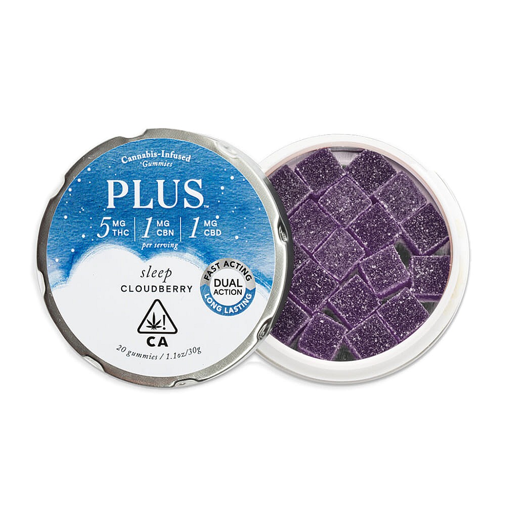 One bite and it’s goodnight! New and improved PLUS SLEEP Cloudberry Nano Gummies are the first Dual Action edibles to combine fast-acting and long-lasting formulas in one product.