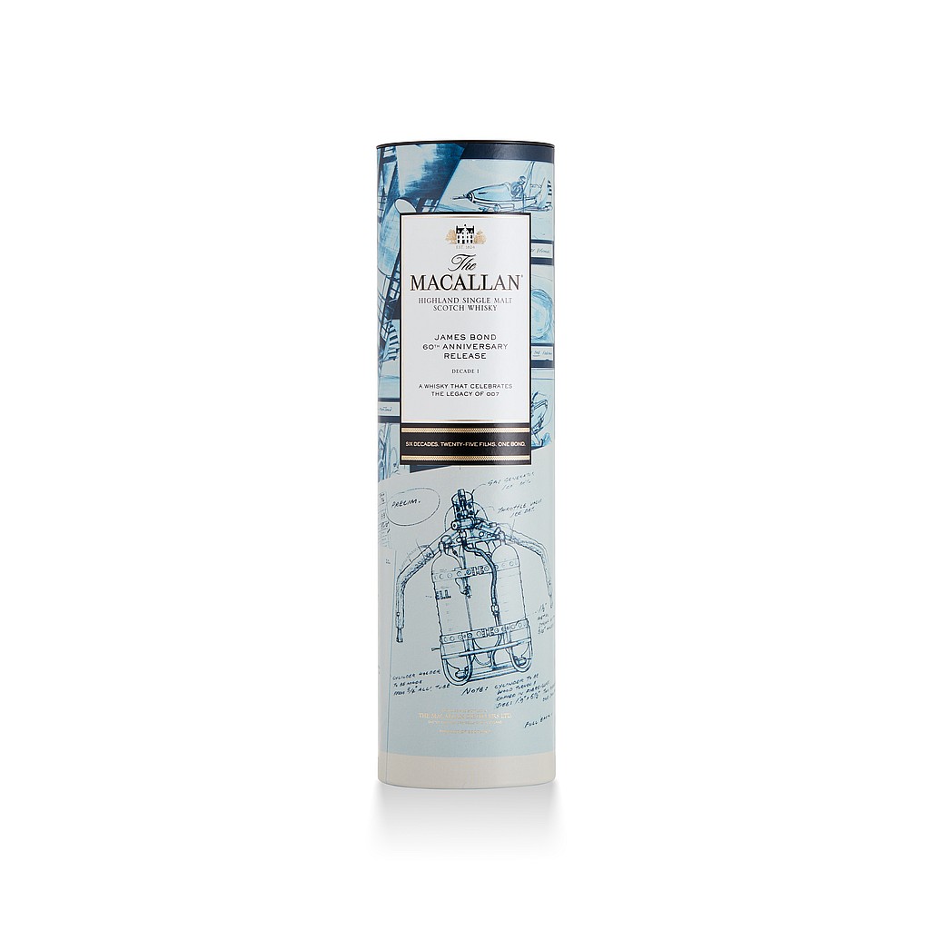 The exclusive offering showcases The Macallan’s single malt Scotch in six limited-edition sets, each one featuring unique designs, colors and inspiration nodding to 007 across six decades.