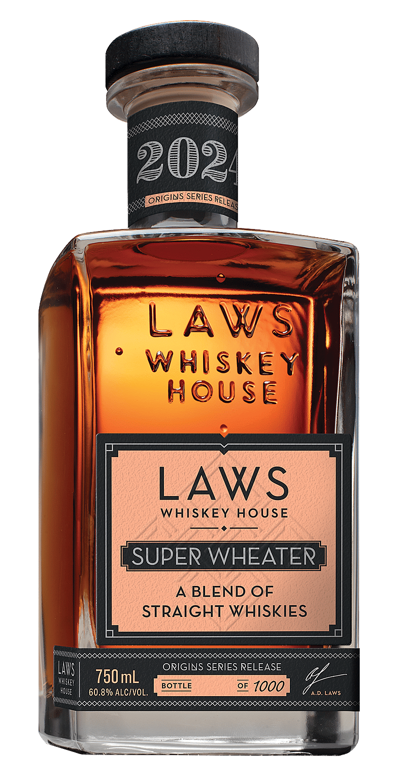Laws Whiskey House’s fourth and latest entry into their Origin series, Super Wheater, is precisely what its name implies: an exercise in wheat’s influence in whiskey. So the Colorado distillery vertically blended barrels of their Flagship Four Grain Bourbon (60 percent corn / 20 percent wheat / 10 percent rye / 10 percent barley) aged from 5 to 12 years, and did the same separately with their 100 percent Centennial Wheat Whiskey. They then took these two whiskey blends and married them together, resulting in a collective mash bill which Laws estimates to being roughly about 45 percent wheat.