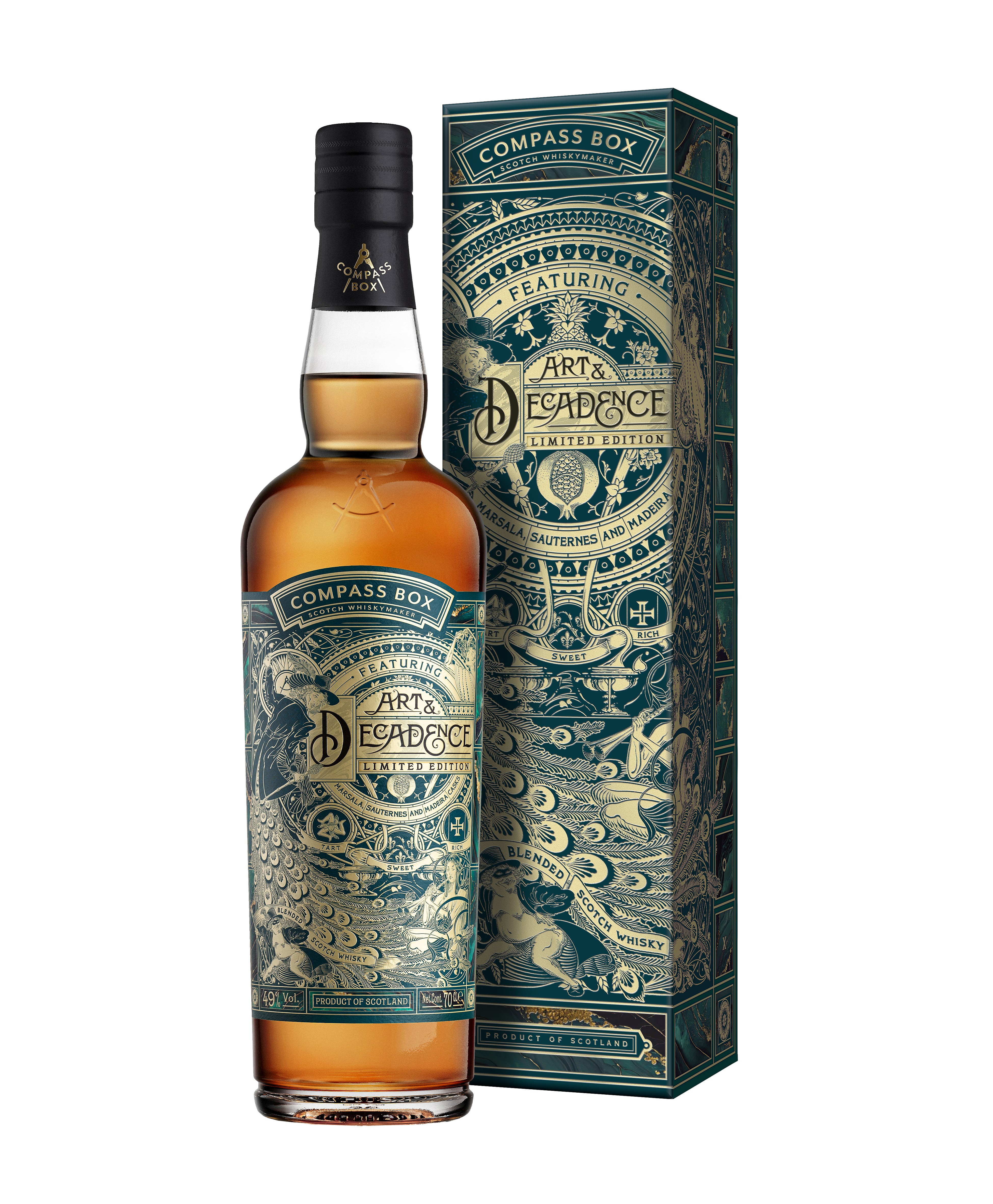 Inspired by the late-19th Century Aesthetic and Decadent Movements, the latest Compass Box release “sought to channel the age of excess and abundance into a rich, succulent whisky that would complement the end of a meal, with notes of dried fruit, vanilla, dark chocolate and fragrant oak,” according to a statement from the brand.