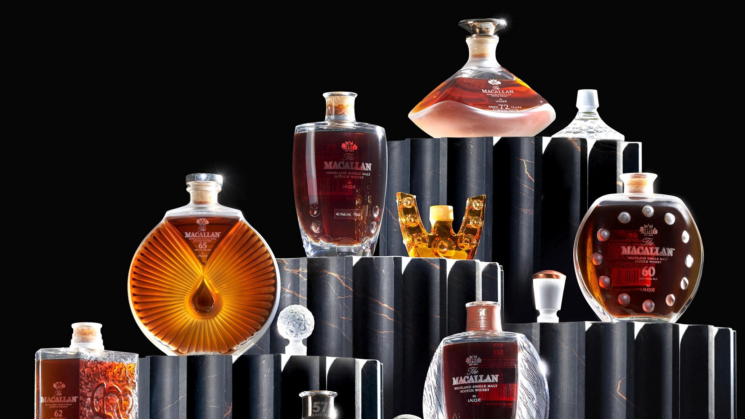 Among the 52 covetable lots featured in the live sale on June 26, a true highlight will be the offering of a complete series of Macallan in Lalique Six Pillars alongside all five chapters of the DCS Compendium. This marks a historic first, as a full Macallan Six Pillars set has never before been presented alongside the entire DCS Compendium collection in a single auction. The legendary partnership between The Macallan distillery and the esteemed French crystal maker Lalique resulted in six unique art pieces, each housing an exceptional whisky aged between 50 and 65 years. These individual masterpieces, with estimates ranging from $46,000 to $75,000, represent the pinnacle of both design and distillation. Complementing these are the DCS Compendium Chapters 1-5, launched in 2015 to honor the legacy of Malt Master David C. Stewart.