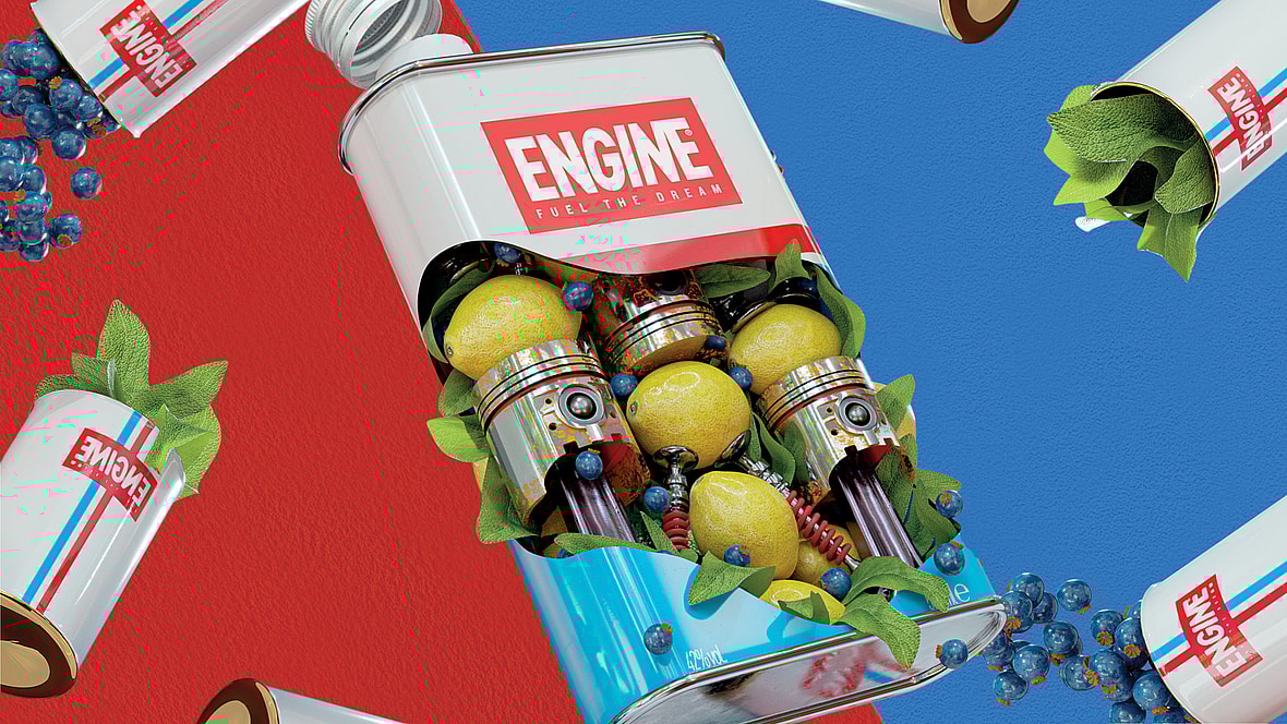 The fragrant spirit comes packaged in a real half-liter tin, reminiscent of the 1980s-era oil cans used to lube up Piaggio Vespa scooters. The stylized interface of EnGINe’s website is modeled after a quaint, retro roadside gas station.