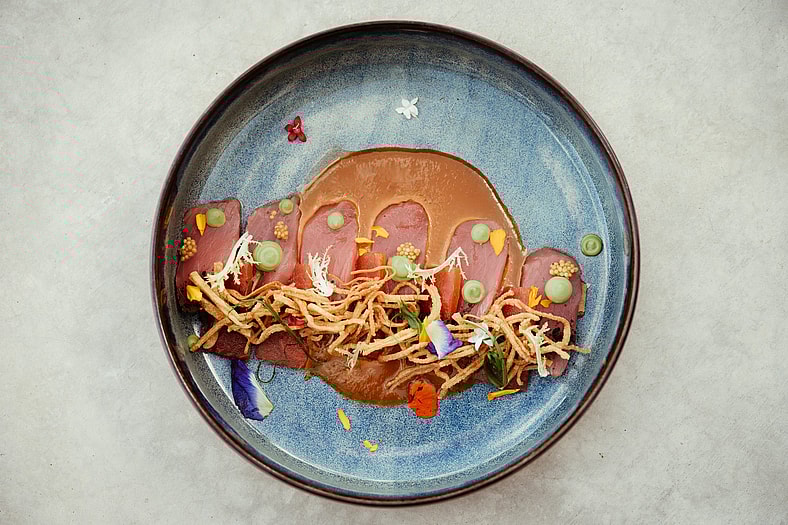 Under Montuori, the culinary program has evolved into a celebration of island identity and maritime bounty. Montuori’s career began in his family’s Sardinian kitchen and led through prestigious establishments like Hotel Hassler Roma and The St. Regis Vommuli Maldives, and he brings the depth of his experience to each dish. “His philosophy, shaped by years of island living, emphasizes the distinctive character of local ingredients and traditional preparation methods,” the brand says.