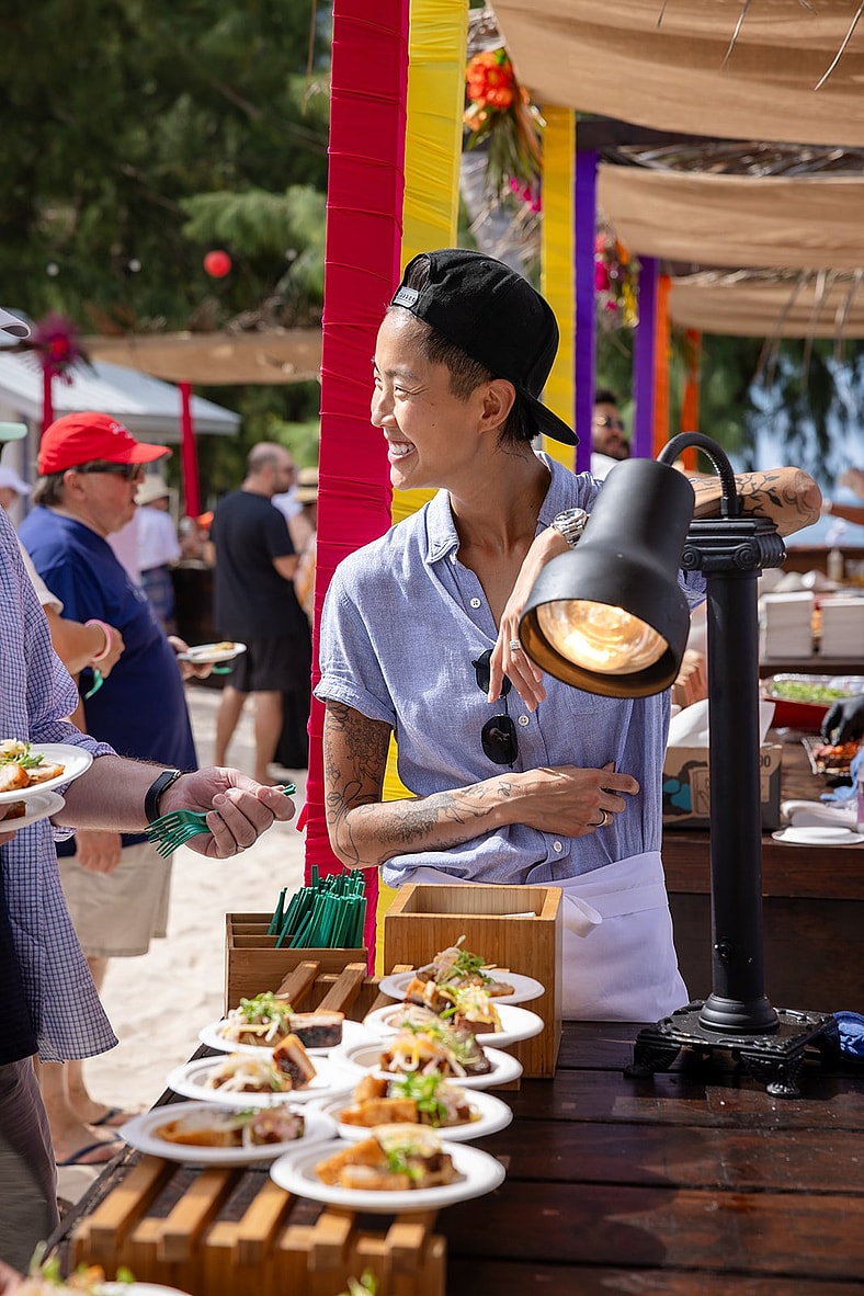 Zimmern, who hosted a “Discover Cayman” event that highlighted a myriad of tasty local fare served in outdoor booths, echoed the oft-heard sentiment that the Cayman Cookout’s smaller size is key to its appeal. “This started as a very small sort of private party on the beach. When José and Eric and Tony [Bourdain] began this, and then started inviting other chefs, it turned into the feather in the cap that every culinarian wants to be involved in. It’s very precious in the best sense of the word. It’s just so intimate. We really do get to know the guests who are here. We’re around. We’re all living in the same place. We see them at breakfast. We see them on the beach. We’re all together here. And that creates a really special, wonderful vibe that you cannot mimic.”