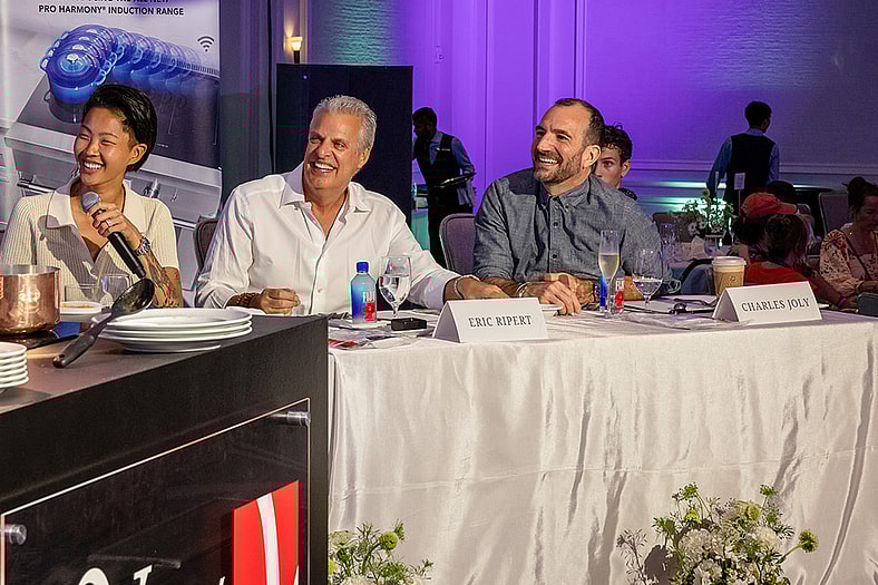 At the event’s farewell brunch, which featured a head-spinning assortment of heaping caviar tins, raw seafood on ice blocks featuring renderings of star chefs, cured meats, fine cheeses, decadent pastries and egg-laden entrees, Zimmern faced off in a brunch battle against South Florida chef Dean Max, whose dish ultimately prevailed, as judged by an expert tasting panel of Ripert, Kish and Joly.