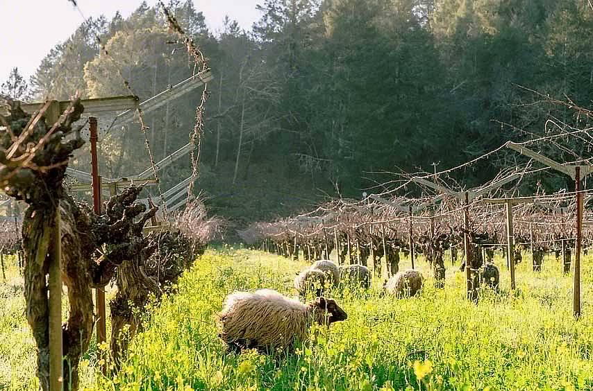 Julie Johnson’s vineyards don’t exactly look like the manicured rows of vines that tend to dot the Napa landscape. Instead, hers are spotted with a herd of sheep, a flock of Guinea fowls, bluebirds, hawks, butterflies and all manner of flora and fauna (including Meyer lemon and olive trees).