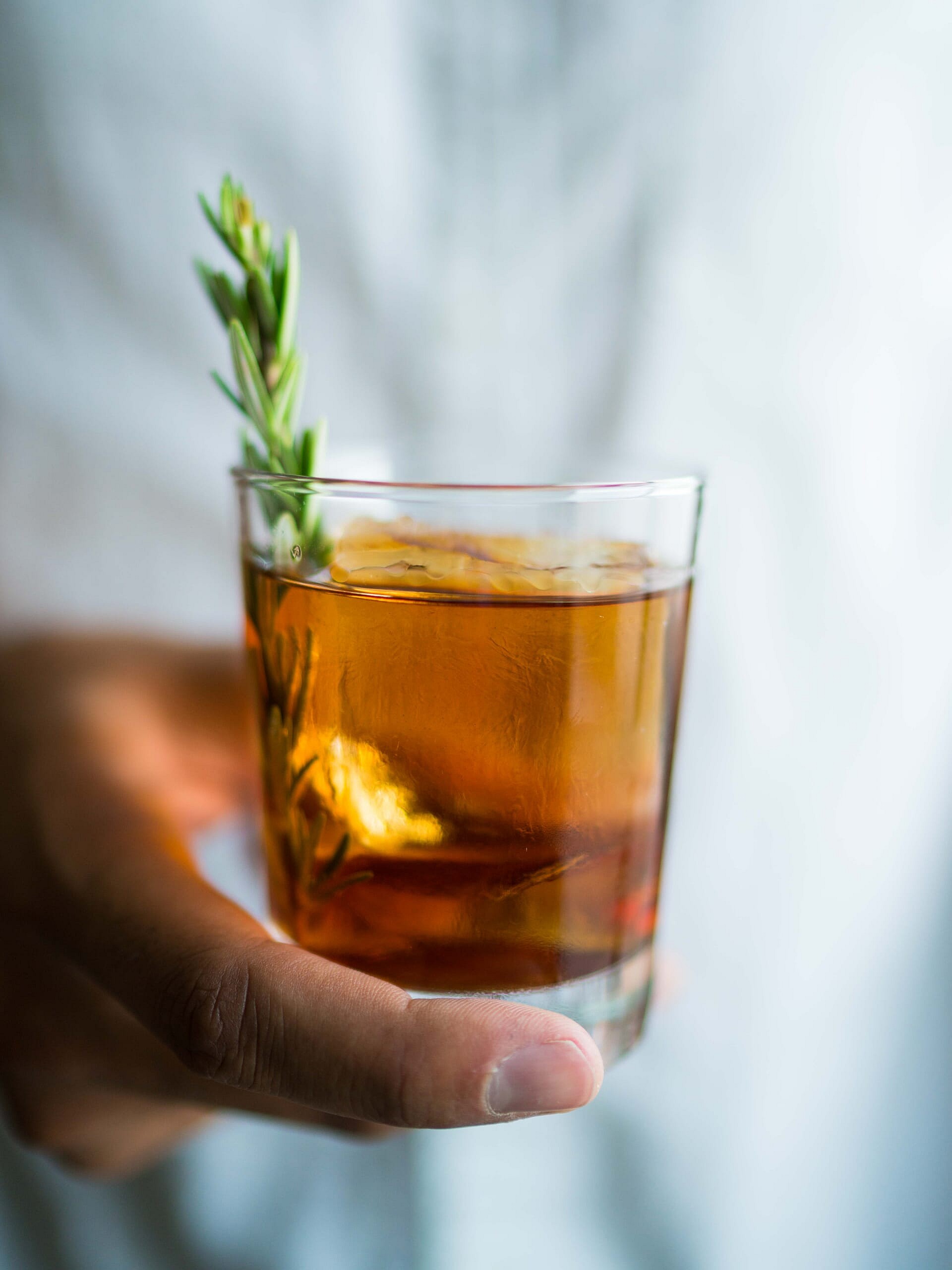 Stir all ingredients with ice to chill, then strain into a rocks glass and serve over ice. Garnish with fresh rosemary.