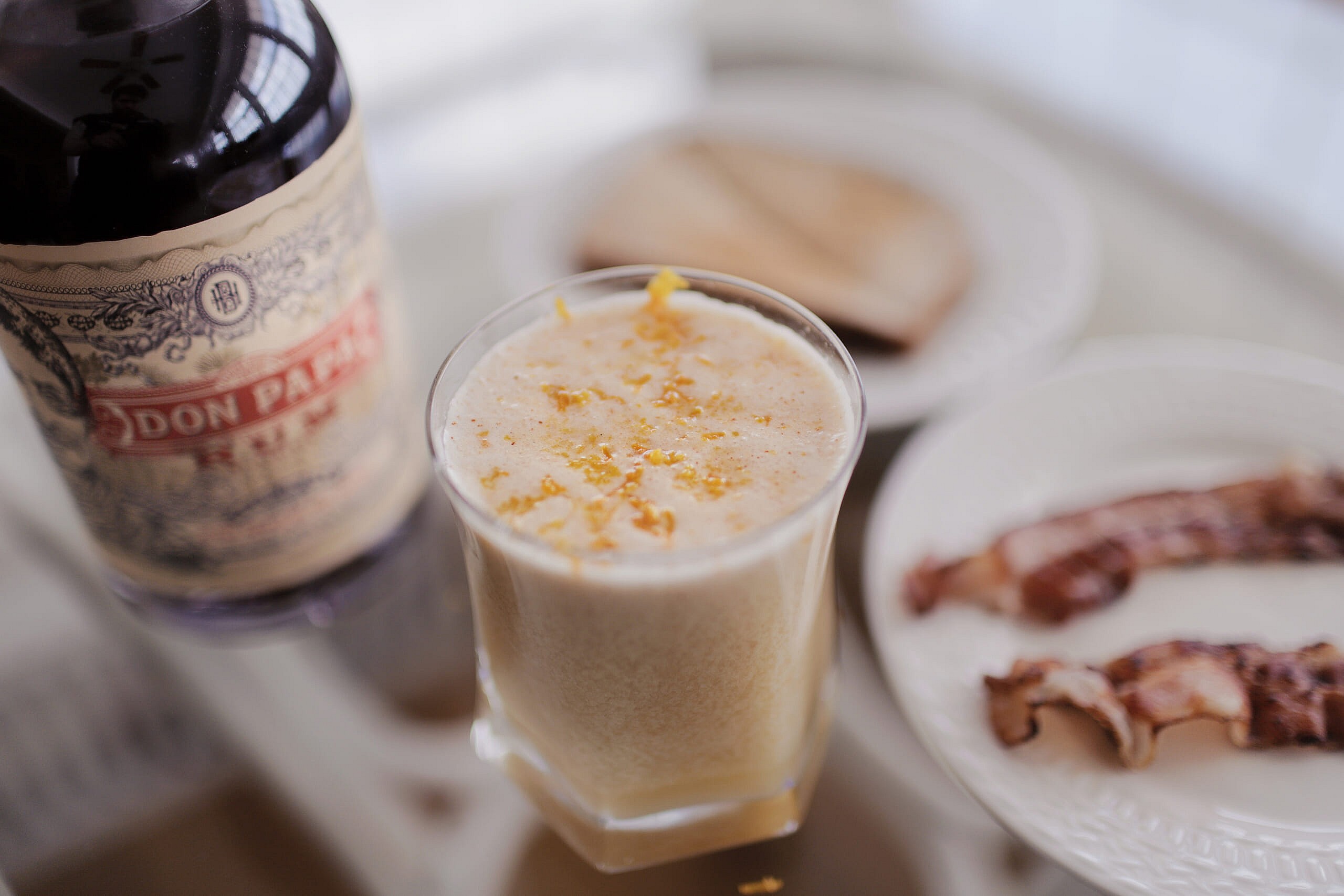 If you’ve got a shaker at home, combine all ingredients with a scoop of ice and go to town. If you don’t have a shaker, toss everything in a blender with a half scoop of ice and fix yourself a creamsicle. Serve in a bathrobe and slippers, all day.