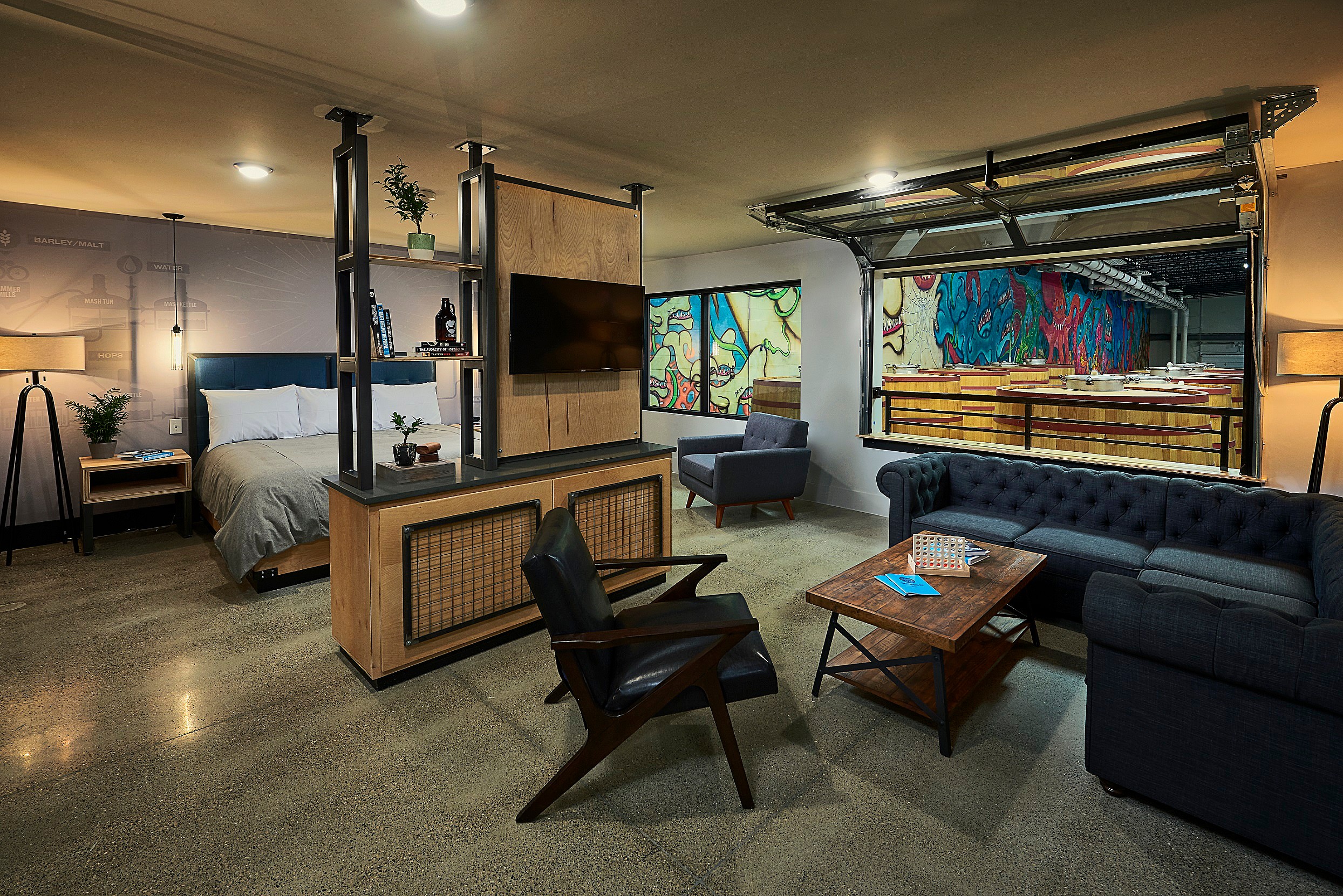 The DogHouse also boasts common areas for guests to relax, including the hotel media room where beer fans can watch the Scottish brewer’s TV show, Brew Dogs, and enjoy a game of ping (or beer) pong, or savor the sites of the brewery from the extensive front patio.