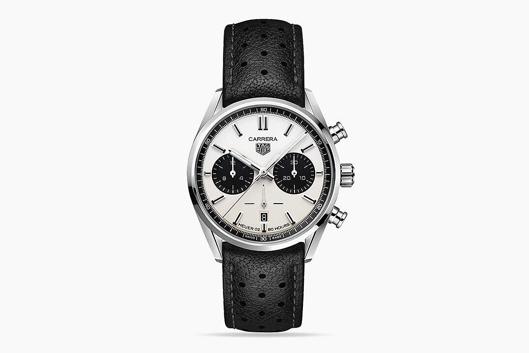 Any enthusiast with a passion for watches knows the Tag Heuer Carrera, a sporty and sleek yet distinctly dressy timepiece. Here, the famed watchmaker teams with Watches of Switzerland for a limited-edition two-tone “panda” iteration. $6,350